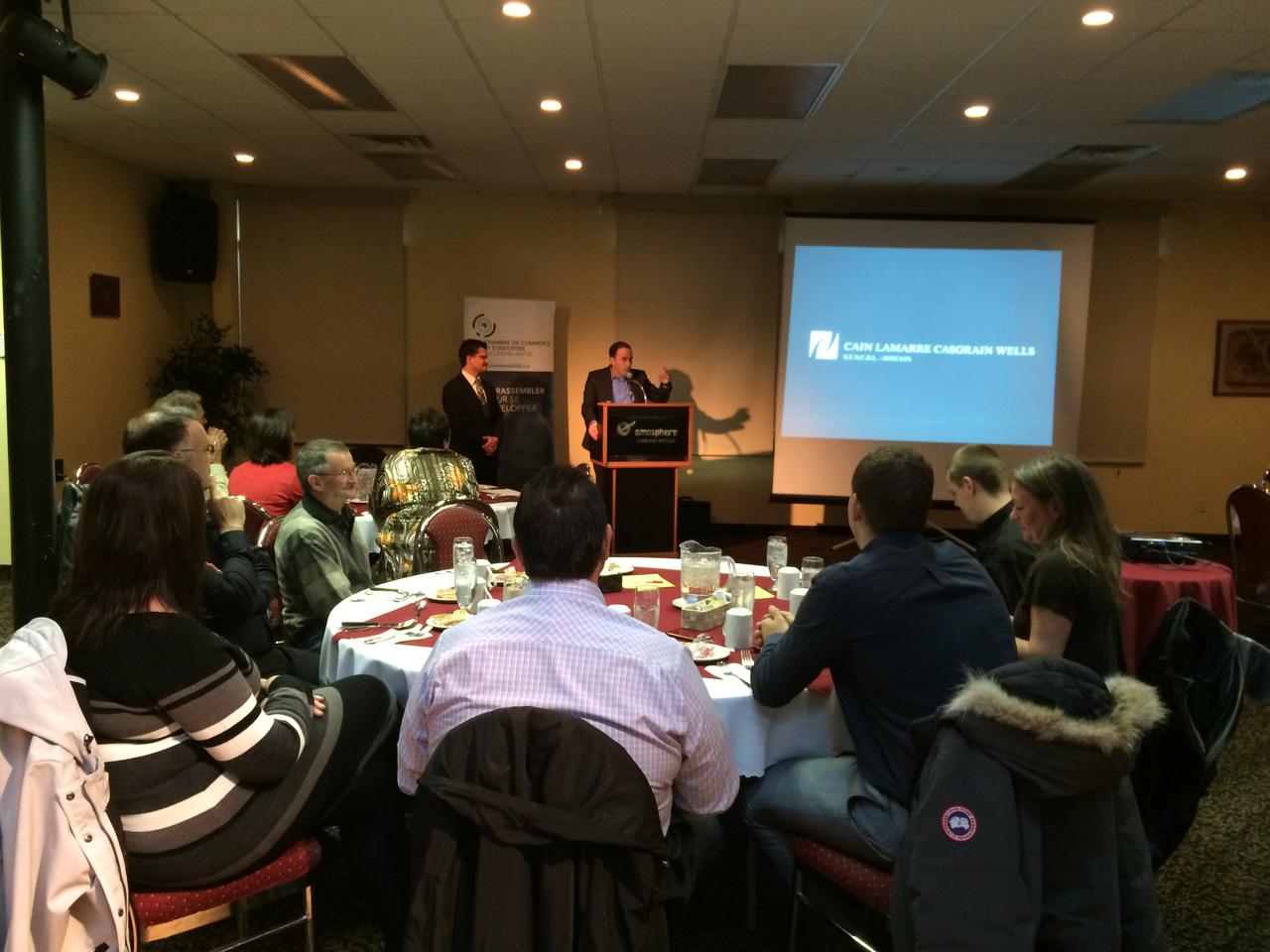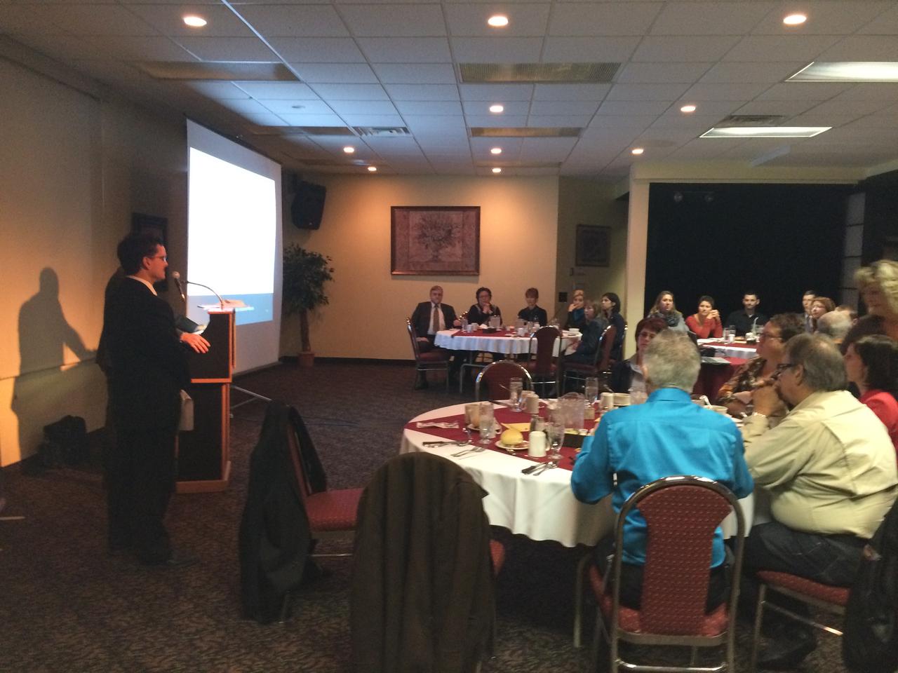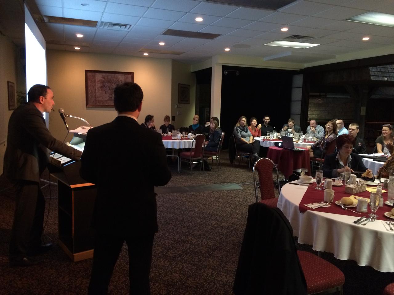 Une trentaine de personnes était présente au dîner-conférence de messieurs Stéphan Ferron et Simon Corbeil au complexe hôtelier Amosphère le 22 octobre dernier.