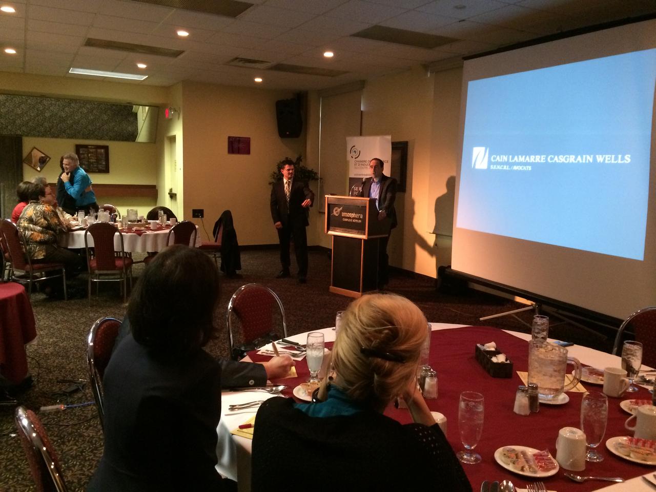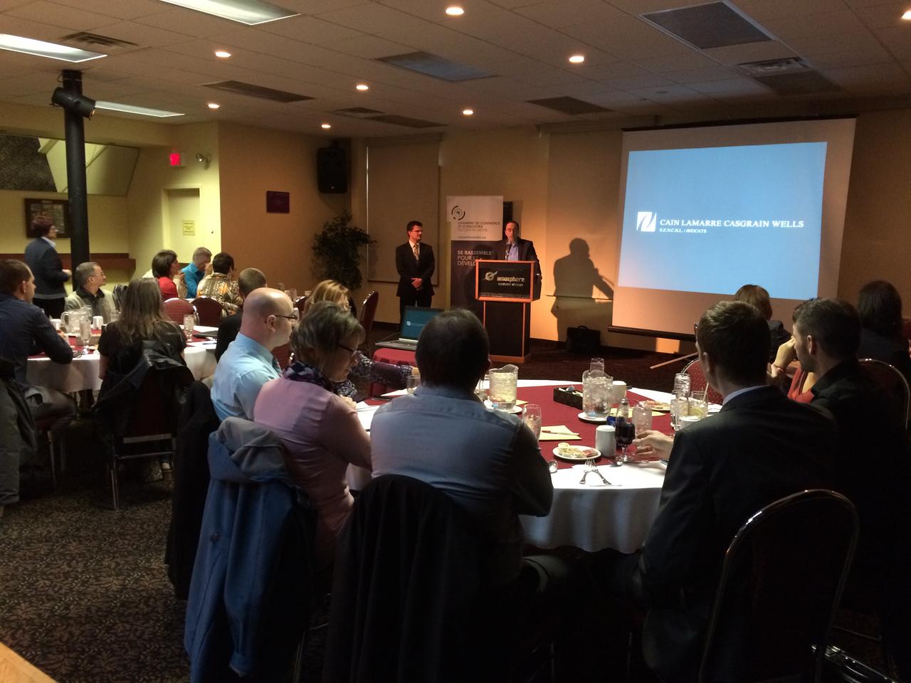 Les 2 avocats du cabinet Cain Lamarre Casgrain Wells sont venus présenter des façons de faire pour mieux gérer les médias sociaux en entreprise. Ils ont rappelé l’importance de posséder une politique de gestion des médias sociaux.