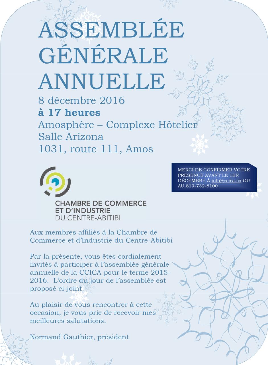 Veuillez confirmer votre présence avant le 1er décembre à info@ccica.ca ou par téléphone au 819 732-8100.