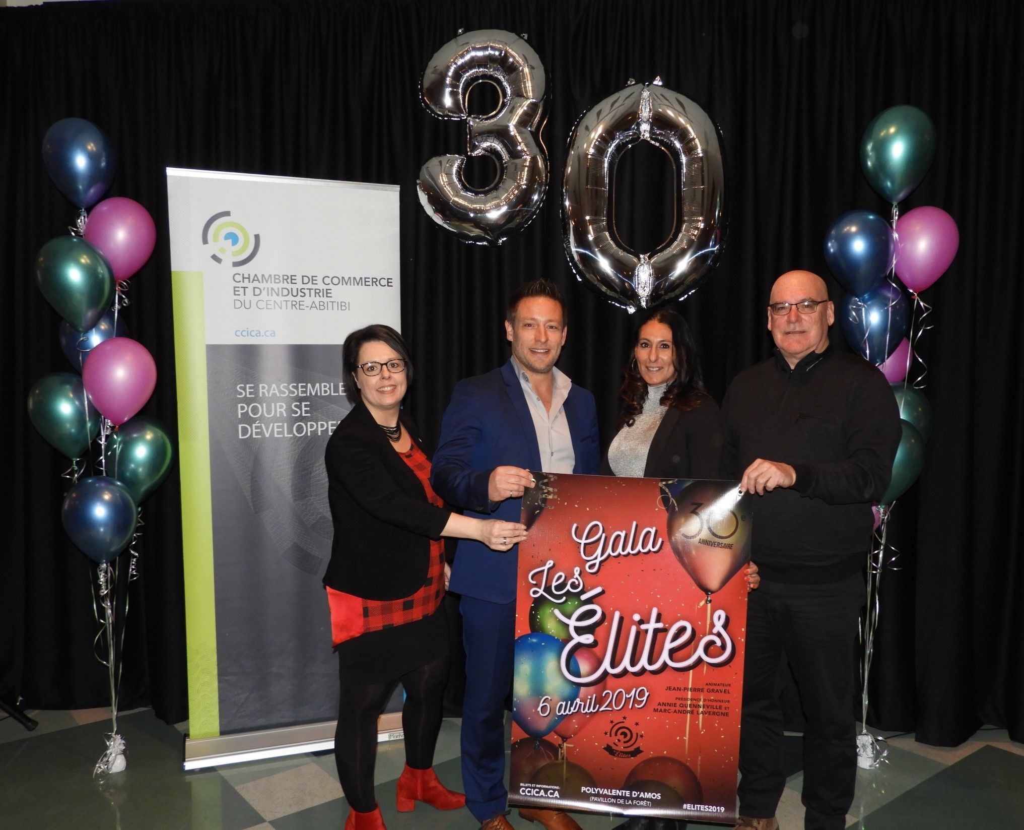 Amos, le 29 janvier 2019 – C’est devant près d’une soixantaine de personnes que la Chambre de commerce et d’industrie du Centre-Abitibi a lancé la 30e édition du Gala Les Élites. C’est sous l’ambiance très festive des années 80 que le comité organisateur accueillera les entrepreneurs à la Polyvalente la Forêt le 6 avril prochain. Les dépôts de candidatures et l’achat de billets seront accessibles en ligne dès le 1er février. Dévoilement du thème et de l’animateur La chambre de commerce replonge dans les années 80 à l’occasion du 30e anniversaire de son gala. « Nous voulons une soirée festive où la musique, la danse et la reconnaissance seront au rendez-vous. Nous célébrerons le travail de nos entreprises, tel un bal étudiant à la Polyvalente. » indique Joanne Breton, directrice générale de la chambre de commerce. Joanne Breton, en a aussi profité pour dévoiler l’animateur de la soirée. Recherchiste, chroniqueur, producteur et réalisateur pour le grand écran, et même écrivain, Jean-Pier Gravel originaire d’Amos animera la soirée du gala. La présidence d’honneur Un couple a été choisi cette année, celui de Annie Quenneville, présidente de la Commission scolaire Harricana (CSH) et de Marc-André Lavergne, Vice-Président des opérations de Monarques Gold. Le milieu minier et la relève entrepreneuriale sont des vecteurs influents sur le développement de notre région, l’un dans la richesse économique qu’il créé et l’autre dans la formation d’une main – d’œuvre qualifiée qu’elle offre pour contribuer à résoudre les problèmes de rareté de la main-d’œuvre. « La tenue du Gala Élite est l’occasion de récompenser nos commerces et nos industries qui se démarquent et qui font la différence. Nous encourageons pour une 30e fois les entreprises à déposer leur candidature en grand nombre afin de partager avec nous leur fierté du travail accompli. », a dit ce couple de 4 enfants. Des reconductions et une nouveauté… La période des mises en candidature sera ouverte le vendredi 1er février. Les membres de la chambre de commerce pourront télécharger les formulaires des catégories sur le site internet du gala. Toutes les catégories et les prix spéciaux y sont expliqués. Les membres ont jusqu’au 1er mars 16 h 30 pour déposer leur candidature à la Chambre de commerce soit par courriel, par la poste ou en personne. Pour ce qui est de la catégorie Service à la clientèle, nous vous rappelons que pour être éligible, une tierce personne doit déposer la candidature d’une entreprise membre qui s’est distinguée par la qualité exceptionnelle du service offert dans la dernière année. La liste des entreprises sera dévoilée le 4 mars. Le public pourra voter pour l’une de ces entreprises du 4 au 22 mars. Surveillez le site du Gala et les réseaux sociaux! Une nouveauté cette année dans le plan de partenariat. La Chambre de commerce a inclus une nouvelle catégorie, celle du partenaire 30e anniversaire. Pour une commandite de 2 000 $, ce commanditaire, seul dans cette catégorie, bénéficiera de visibilité avant et après le Gala comme la plupart des autres, cependant lors de l’événement il devra offrir à tous les participants un cadeau de son choix, à l’effigie de son entreprise. Étant donné que la formule satisfait, les convives auront un souper au restaurant inclut dans l’achat du billet pour le Gala. Les 7 restaurateurs participants proposeront de nouveau un menu Spécial Gala à leurs convives, valable pour le 6 avril seulement. Ils seront mis en ligne prochainement afin que chacun puisse choisir son lieu. Un nombre de places maximum dédié aux participants du Gala a été préalablement déterminé. L’heure du souper dans les restaurants est prévue pour 17 h et les convives seront invités à se rendre au Gala pour 19 h. Un dessert sera servi lors de la soirée du Gala. La vente des billets sera accessible en ligne sur le site du Gala à partir du vendredi 1er février. Si vous souhaitez avoir plus d’information, il suffit de téléphoner au 819 732-8100 ou d’envoyer un message à info@ccica.ca. -30- Source : Joanne Breton - Directrice générale 819 732-8100 poste 43 - direction@ccica.ca