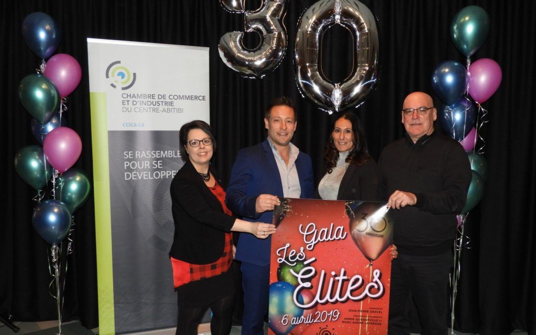 Amos, le 29 janvier 2019 – C’est devant près d’une soixantaine de personnes que la Chambre de commerce et d’industrie du Centre-Abitibi a lancé la 30e édition du Gala Les Élites. C’est sous l’ambiance très festive des années 80 que le comité organisateur accueillera les entrepreneurs à la Polyvalente la Forêt le 6 avril prochain. Les dépôts de candidatures et l’achat de billets seront accessibles en ligne dès le 1er février. Dévoilement du thème et de l’animateur La chambre de commerce replonge dans les années 80 à l’occasion du 30e anniversaire de son gala. « Nous voulons une soirée festive où la musique, la danse et la reconnaissance seront au rendez-vous. Nous célébrerons le travail de nos entreprises, tel un bal étudiant à la Polyvalente. » indique Joanne Breton, directrice générale de la chambre de commerce. Joanne Breton, en a aussi profité pour dévoiler l’animateur de la soirée. Recherchiste, chroniqueur, producteur et réalisateur pour le grand écran, et même écrivain, Jean-Pier Gravel originaire d’Amos animera la soirée du gala. La présidence d’honneur Un couple a été choisi cette année, celui de Annie Quenneville, présidente de la Commission scolaire Harricana (CSH) et de Marc-André Lavergne, Vice-Président des opérations de Monarques Gold. Le milieu minier et la relève entrepreneuriale sont des vecteurs influents sur le développement de notre région, l’un dans la richesse économique qu’il créé et l’autre dans la formation d’une main – d’œuvre qualifiée qu’elle offre pour contribuer à résoudre les problèmes de rareté de la main-d’œuvre. « La tenue du Gala Élite est l’occasion de récompenser nos commerces et nos industries qui se démarquent et qui font la différence. Nous encourageons pour une 30e fois les entreprises à déposer leur candidature en grand nombre afin de partager avec nous leur fierté du travail accompli. », a dit ce couple de 4 enfants. Des reconductions et une nouveauté… La période des mises en candidature sera ouverte le vendredi 1er février. Les membres de la chambre de commerce pourront télécharger les formulaires des catégories sur le site internet du gala. Toutes les catégories et les prix spéciaux y sont expliqués. Les membres ont jusqu’au 1er mars 16 h 30 pour déposer leur candidature à la Chambre de commerce soit par courriel, par la poste ou en personne. Pour ce qui est de la catégorie Service à la clientèle, nous vous rappelons que pour être éligible, une tierce personne doit déposer la candidature d’une entreprise membre qui s’est distinguée par la qualité exceptionnelle du service offert dans la dernière année. La liste des entreprises sera dévoilée le 4 mars. Le public pourra voter pour l’une de ces entreprises du 4 au 22 mars. Surveillez le site du Gala et les réseaux sociaux! Une nouveauté cette année dans le plan de partenariat. La Chambre de commerce a inclus une nouvelle catégorie, celle du partenaire 30e anniversaire. Pour une commandite de 2 000 $, ce commanditaire, seul dans cette catégorie, bénéficiera de visibilité avant et après le Gala comme la plupart des autres, cependant lors de l’événement il devra offrir à tous les participants un cadeau de son choix, à l’effigie de son entreprise. Étant donné que la formule satisfait, les convives auront un souper au restaurant inclut dans l’achat du billet pour le Gala. Les 7 restaurateurs participants proposeront de nouveau un menu Spécial Gala à leurs convives, valable pour le 6 avril seulement. Ils seront mis en ligne prochainement afin que chacun puisse choisir son lieu. Un nombre de places maximum dédié aux participants du Gala a été préalablement déterminé. L’heure du souper dans les restaurants est prévue pour 17 h et les convives seront invités à se rendre au Gala pour 19 h. Un dessert sera servi lors de la soirée du Gala. La vente des billets sera accessible en ligne sur le site du Gala à partir du vendredi 1er février. Si vous souhaitez avoir plus d’information, il suffit de téléphoner au 819 732-8100 ou d’envoyer un message à info@ccica.ca.