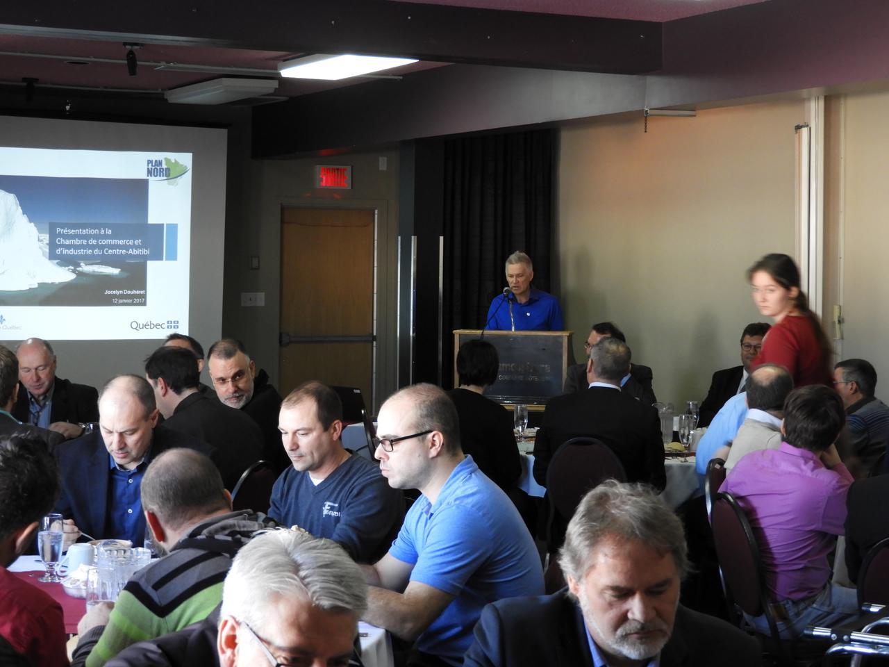 Avec environ 1,5 milliard $ de projets qui se développent chaque année dans la région du Nord-du-Québec, les entreprises de l’Abitibi-Témiscamingue ont plus que jamais intérêt à se faire connaître. Elles ont un nouvel outil pour le faire, soit la nouvelle plateforme numérique du Bureau de commercialisation de la Société du Plan Nord. Développée à même le site web de la Société, la plateforme permet aux entreprises, aux donneurs d’ordre publics et privés et aux promoteurs de projets d’être informés rapidement lorsque des appels d’offre sont lancés. Une liste d’entreprises provenant de partout au Québec y est aussi accessible de même que des informations et conseils en lien avec le marché du Nord québécois. Gratuite, la plateforme devient un outil incontournable dans le développement du Plan Nord, estime le député d’Abitibi-Est, Guy Bourgeois. «La plateforme donne de l’information stratégique dans des temps stratégiques. Quand les projets se présentent, la plateforme devient un lien inestimable pour voir rapidement les opportunités d’affaires. Elle permet aussi de savoir ce qu’il y a comme planification pour les 12 ou 18 prochains mois pour bien vous positionner. Parfois il peut y avoir des projets trop gros pour certaines entreprises. Elles peuvent alors penser à se trouver des partenaires. C’est ça qu’on voulait donner comme outil.» La région reçoit sa part Invité par la Chambre de commerce et d’industrie du Centre-Abitibi à parler de la plateforme et du Bureau de commercialisation devant 75 personnes, Guy Bourgeois s’inscrit en faux envers ceux qui prétendent que l’Abitibi-Témiscamingue ne reçoit pas sa part du développement nordique, citant notamment le projet de la mine Goldcorp.