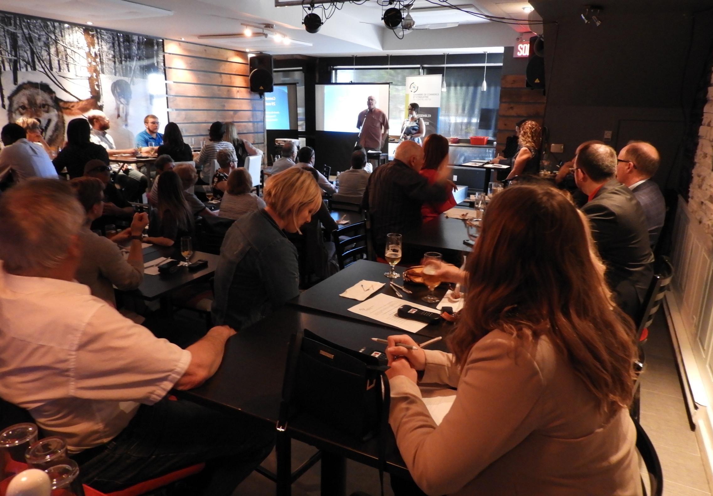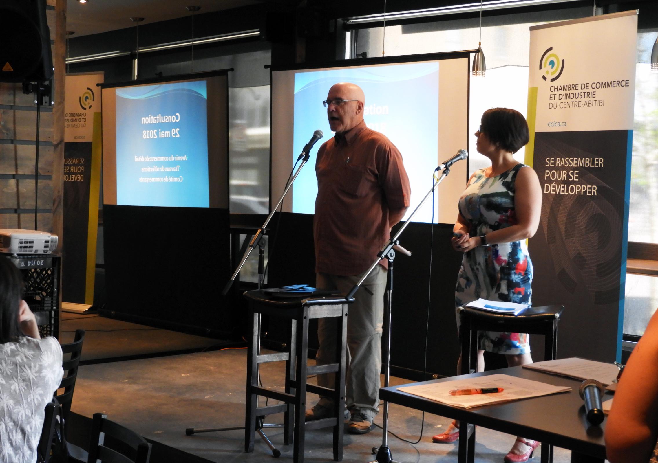 Un des mandats de la Chambre de commerce et d’industrie du Centre-Abitibi (CCICA) est de défendre l’intérêt de ses membres. Dans la situation où différents enjeux économiques pourraient avoir un impact sur l’activité commerciale de la ville, la CCICA a décidé de consulter les commerçants et les entreprises de services afin d’échanger sur les trois sujets suivants : - L’avenir du commerce et du service – achat en ligne - Les travaux de réfection - Le comité de commerçants Une cinquantaine de personnes étaient présentes. L’activité a eu lieu le 29 mai 2018 à la P’tite Bouteille d’Amos. Un système de votation était utilisé pour rendre l’animation interactive. Cet outil a permis à chacun des participants de donner leurs avis sur les différentes problématiques et de connaître la moyenne des résultats pour chaque question posée. Tous les participants ont pu apporter leurs commentaires sur chacun des sujets ci-haut mentionnés. Le président de la chambre de commerce, M. Claude Balleux et la directrice générale, Mme Joanne Breton, ont animé l’activité. Cliquez ici pour lire le compte-rendu de la soirée. Cliquez ici pour consulter le diaporama de l'activité et le résultats des votes des participants