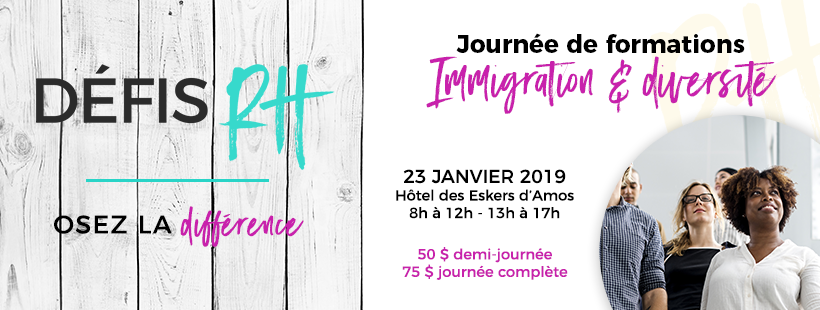 Dans le contexte actuel de rareté de main-d’œuvre, vous seriez ouvert embaucher un travailleur étranger ? Nous avons ce qu’il vous faut ! Journée de formations IMMIGRATION ET DIVERSITÉ Pour vous inscrire à cette journée de formations, remplissez le formulaire avant le 21 janvier 2019 en cliquant ici. Dans le cadre de la démarche entreprise par les organismes de développement pour contrer la rareté de la main-d'œuvre, une journée de formations sur l’immigration et la diversité aura lieu le mercredi 23 janvier 2019, de 8 h à 12 h et de 13 h à 17 h à l'Hôtel des Eskers d’Amos. Dans le contexte actuel du marché de l’emploi, l’embauche d’un ou de travailleur(s) étranger pourrait s’avérer LA solution à votre problème de manque de main-d’œuvre. · Vous aimeriez en apprendre davantage sur les processus d’immigration ? · Vous aimeriez connaitre les différents programmes offerts par le gouvernement quant à l’emploi de personnes immigrantes ou de minorités ethnoculturelles ? · Comment pouvez-vous bien les intégrer afin d’assurer leur fidélisation ? Voilà quelques questions auxquelles vous trouverez réponses lors de cette journée de formations. Voici un aperçu du déroulement : AM · Présentation « Embauche de travailleurs immigrants » du ministère de l’Immigration, de la Diversité et de l’Inclusion (MIDI) · Présentation sur l’« avant » et l’« après » du dossier d’immigration dans l’embauche d’un candidat étranger, par Me Robert-André Adam et Me Alexandre Cimon de Cain Lamarre · Présentation des services du Mouvement de la Relève Amos-Région (MRAR) Diner (non-inclus) PM · Formation « Gestion de la diversité culturelle en entreprise » par Mme Anne Martin, PDG de IDL experts conseils N’hésitez pas à communiquer avec nous si vous souhaitez plus de détails : info@ccica.ca ou 819 732-8100.