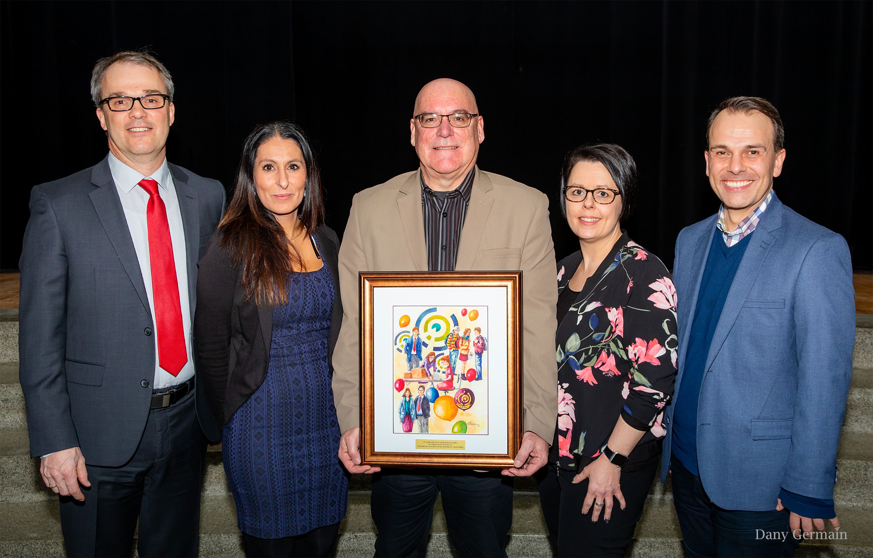 Le conseil des commissaires décerne le prix reconnaissance « Partenaire de la persévérance scolaire de l’Harricana 2018 » à la Chambre de commerce et d’industrie du Centre-Abitibi (CCICA) pour la remise de l’Élite de la persévérance et réussite éducative. ÉLITE AUX ENTREPRISES QUI SUPPORTENT LA PERSÉVÉRANCE DE LEURS EMPLOYÉS ÉTUDIANTS Dans un contexte de pénurie de main-d’œuvre, le rôle des gens d’affaires et des employeurs est déterminant, tant pour la persévérance scolaire des élèves et des étudiants que pour la rétention des employés. Au-delà de la prospérité des entreprises, c’est la vitalité et l’atteinte du plein potentiel économique des milieux qui est en jeu. D’où l’importance de valoriser les bonnes pratiques de conciliation travail-études et de partager les initiatives permettant aux employeurs de combler leur besoin de main-d’œuvre tout en formant et inspirant les futurs citoyens, employés, de demain! Sur la photo : M. Yannick Roy, directeur général CSH et Mme Annie Quenneville, présidente de la CSH, M. Claude Balleux, président de la CCICA, Mme Joanne Breton, directrice générale de la CCICA et M. Normand Dupré, de la CCICA.