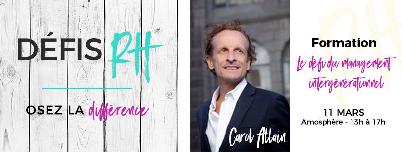 11 mars de 13h à 17h à l'Amosphère Formation de Carol Allain sur le choc des générations Monsieur Carol Allain, nourrit une passion particulière pour tout ce qui touche le comportement humain, les relations entre individus et aussi les composantes de la santé. Après avoir enseigné de nombreuses années au niveau universitaire, Monsieur Allain a décidé d'utiliser ses talents de formateur et de motivateur à aider les entreprises à maximiser la compétence de chacun de leurs employés, dans le but d'explorer de nouvelles attitudes et de mieux s'adapter aux changements qui est la plus grande préoccupation de chacun d'entre nous. Membre : 50 $ - non-membre : 65 $ Inscription : https://goo.gl/forms/xbkPvzbpwsuPqq7i2