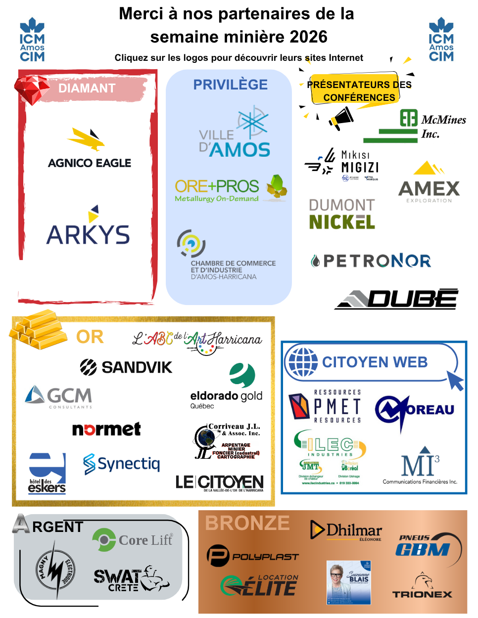 Organisé par l'ABC de l'art Harricana en partenariat avec ICM section Amos, un concours de dessin est organisé pour illustrer le monde minier, sous le thème « NOTRE AVENIR SE FORGE ICI ». Que ce soit un mineur, un prospecteur, une fosse, de la machinerie ou toute autre facette du secteur minier, chaque oeuvre vous permettra de participer au tirage d'une des 2 cartes cadeaux de 100$ chez L'ABC de l'art Harricana, fait parmi les dessins reçus dans chaque catégorie :