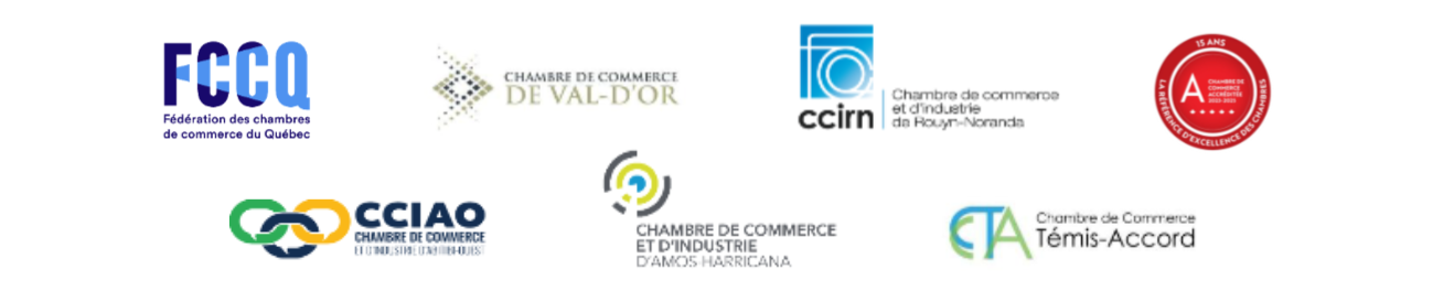 Les chambres de commerce de l’Abitibi-Témiscamingue regroupent cinq organisations locales dynamiques : celles de Val-d’Or, Rouyn-Noranda, Amos, La Sarre et Témiscamingue. Ensemble, elles représentent un réseau engagé au service du développement économique régional. En tant que porte-voix des entreprises de tous les secteurs, elles travaillent à promouvoir un environnement d’affaires favorable, à soutenir l’entrepreneuriat et à défendre les intérêts de leurs membres auprès des instances gouvernementales. Solidaires et enracinées dans leur milieu, ces chambres jouent un rôle clé dans la vitalité économique et sociale de l’Abitibi-Témiscamingue.