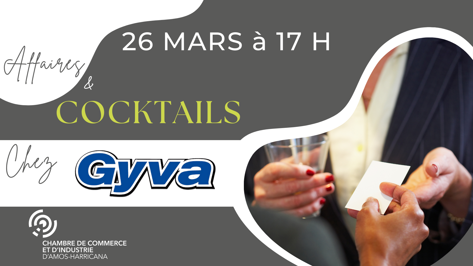 Le 26 mars à 17 h, venez rencontrer Julie Frigon, qui prend la relève de son père chez GYVA. Ce sera une occasion unique de découvrir les nouvelles orientations de l’entreprise et d’échanger avec la communauté d’affaires dans une ambiance conviviale.